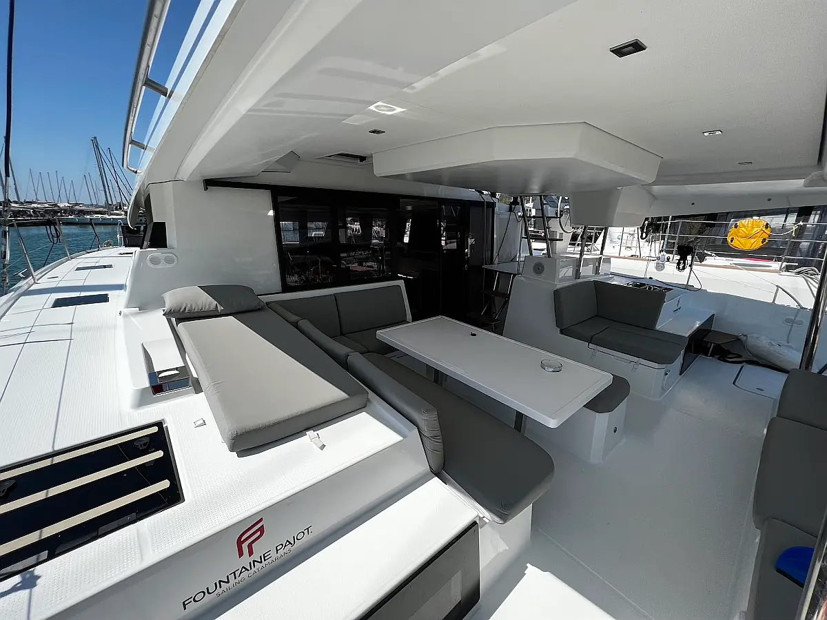 Odslovací zařízení, Generátor 220V (10,2kW), Měnič napětí 12V/220V (2kW), Solární panely (3x175W), Rozvod teplé vody, Klimatizace ve všech kajutách a salonu
