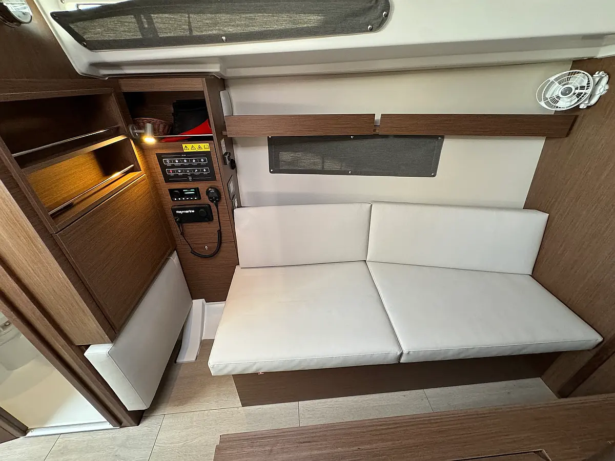Bimini, Electric windlass, Folding bathing platform, Cockpit cushions, Sprayhood, Cockpit shower